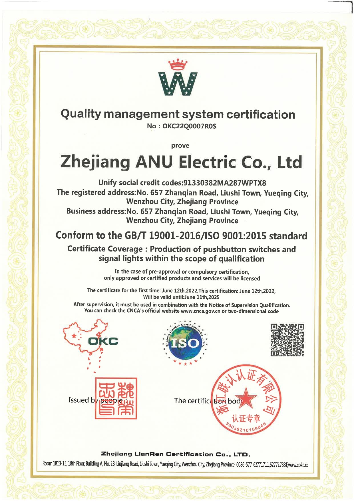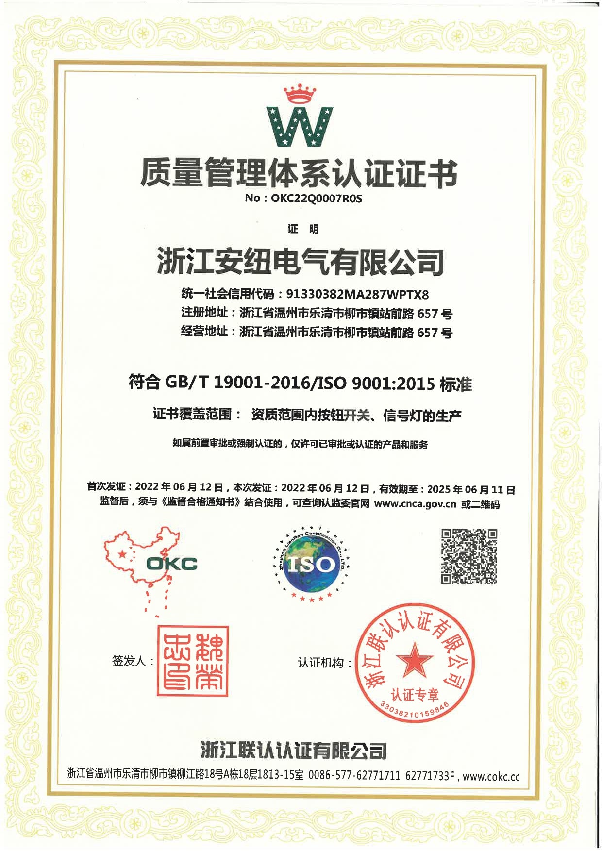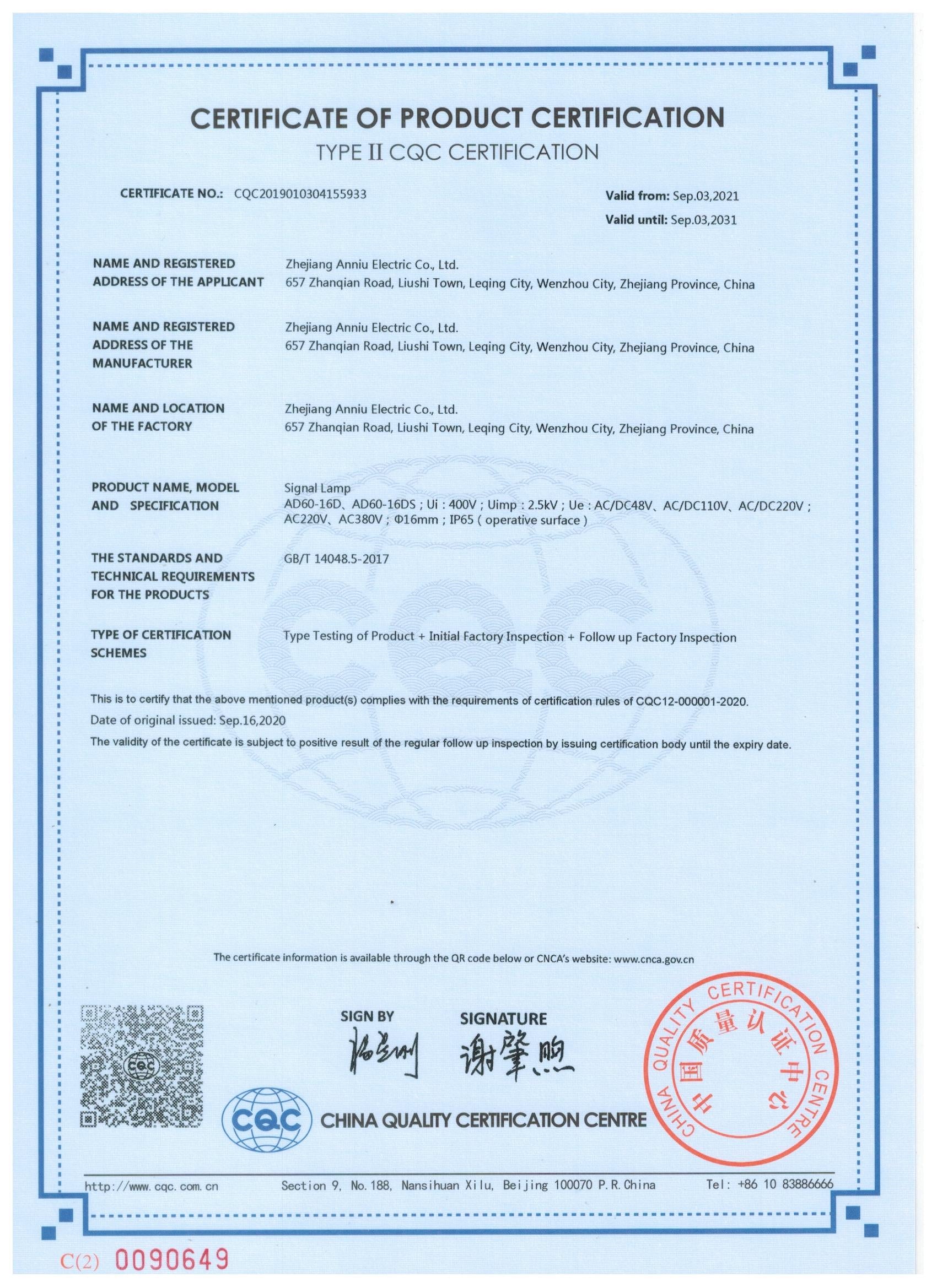 CQC Certification of Push-Button Switch and Signal Lamp
