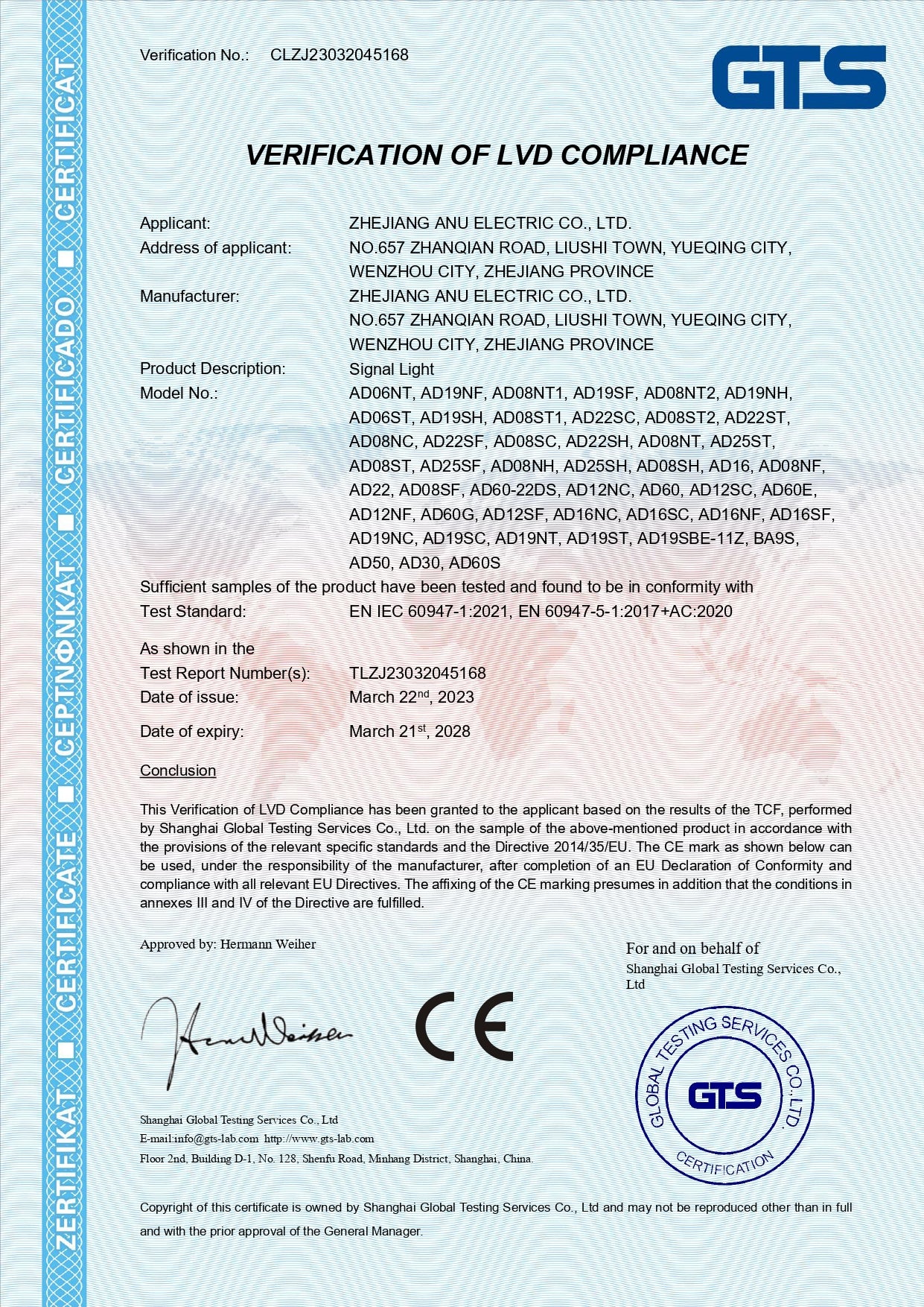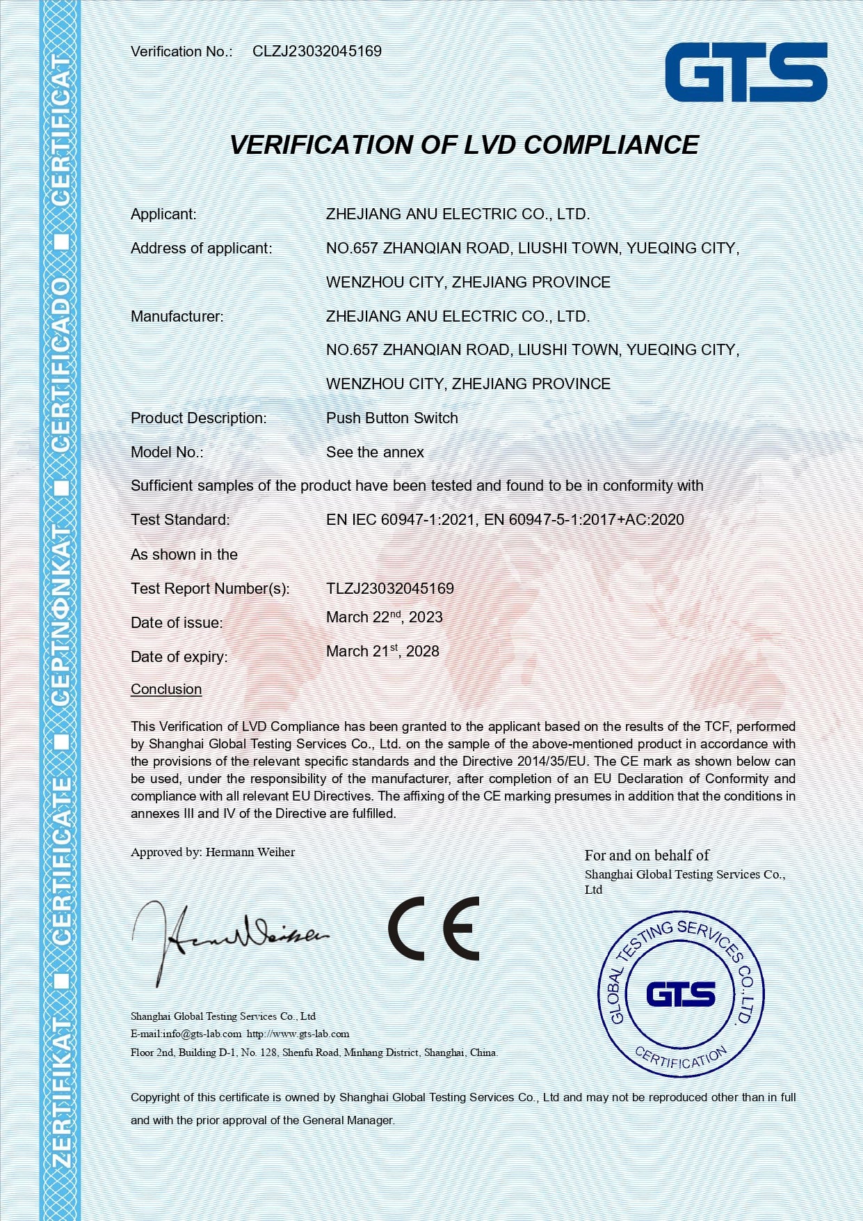 CE Marking of Push Button Switch and Signal Light